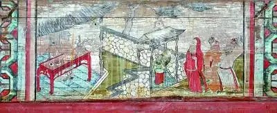 ①温州苍南县碗窑村上窑三官庙戏台上的“水漫金山”主题彩绘