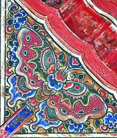 ④温州文成县东方村方坑太阴宫戏台平棊天花四角的蝴蝶彩绘