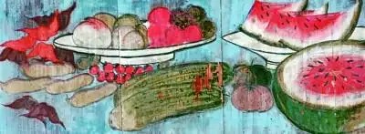 ⑥温州文成县东方村方坑太阴宫戏台棚壁上的瓜果彩绘