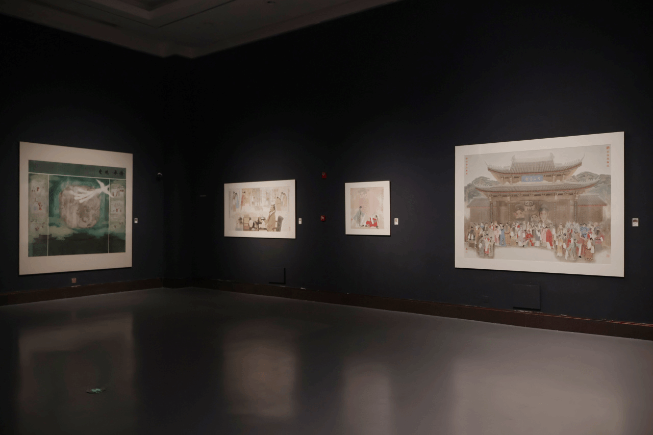 如今,展厅内既有《琵琶记》《荆钗记》等经典剧目场景的工笔细腻再现,也有《空谷余音》等山水作品对戏曲意境的留白抽象诠释。从工笔长卷到数字动画,从温州古戏台的斑驳彩绘到展厅的科技交互,“宋韵南戏”展览构建了一场跨越千年的对话,当笔墨与数字共舞,传承与创新齐鸣,戏曲的文化基因正在时代的画布上续写新的传奇。