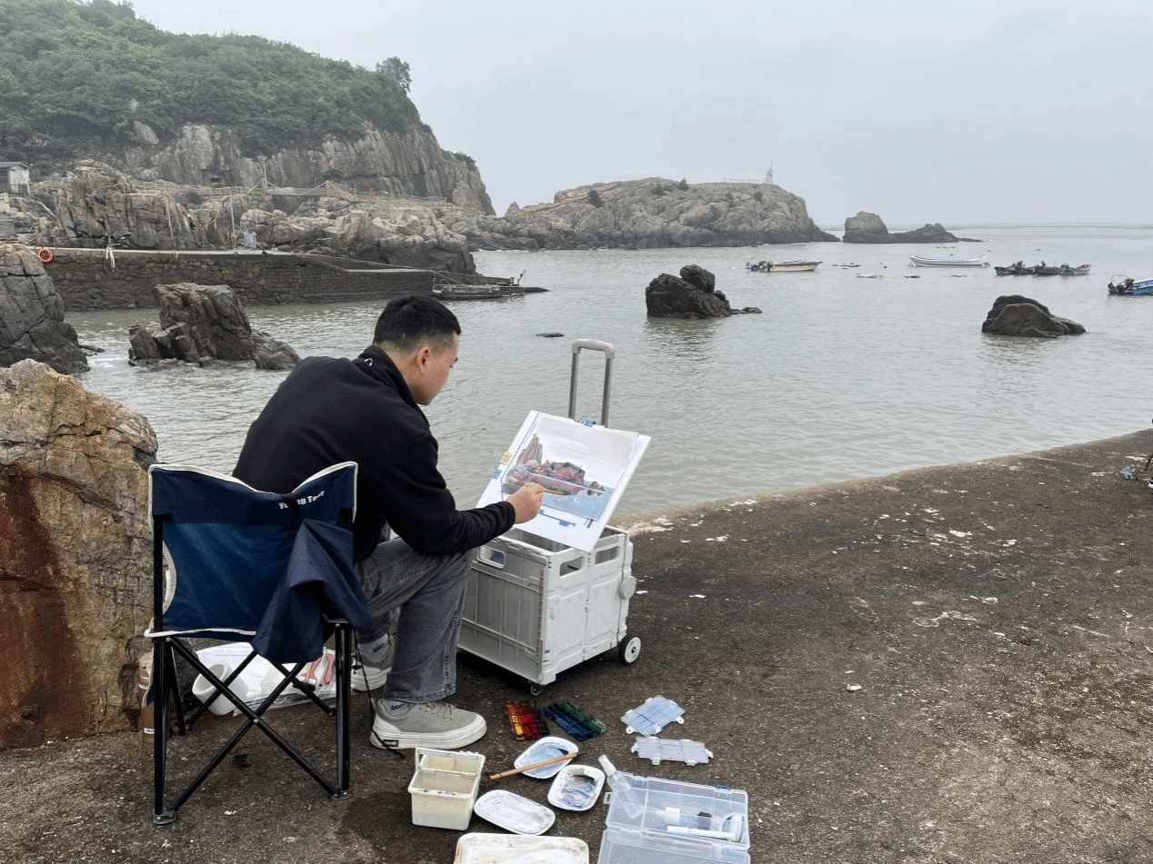 恳谈现场,思想的火花在山海间碰撞。“在人工智能图像生成技术飞速发展的今天,画家亲临实地的写生体验更显珍贵,美术师范教育要牢牢守护这份‘在场式’创作感知。”他强调,美术师范教育要守护这份纯粹的创作感知,着力培育未来美术教师独有的、不可被AI替代的审美观察力与艺术感知力,为“艺术海岛”培育本土美育人才蓄力。从美术教育变革的宏观视角出发,李崇高老师强调人工智能技术正在重塑美术教育生态,未来美术教师需聚焦文化理解、艺术共情、创意表达等AI无法企及的核心素养,深耕人文美育根基,坚守教育初心,以美育力量赋能海岛文化传承与文旅融合发展。
