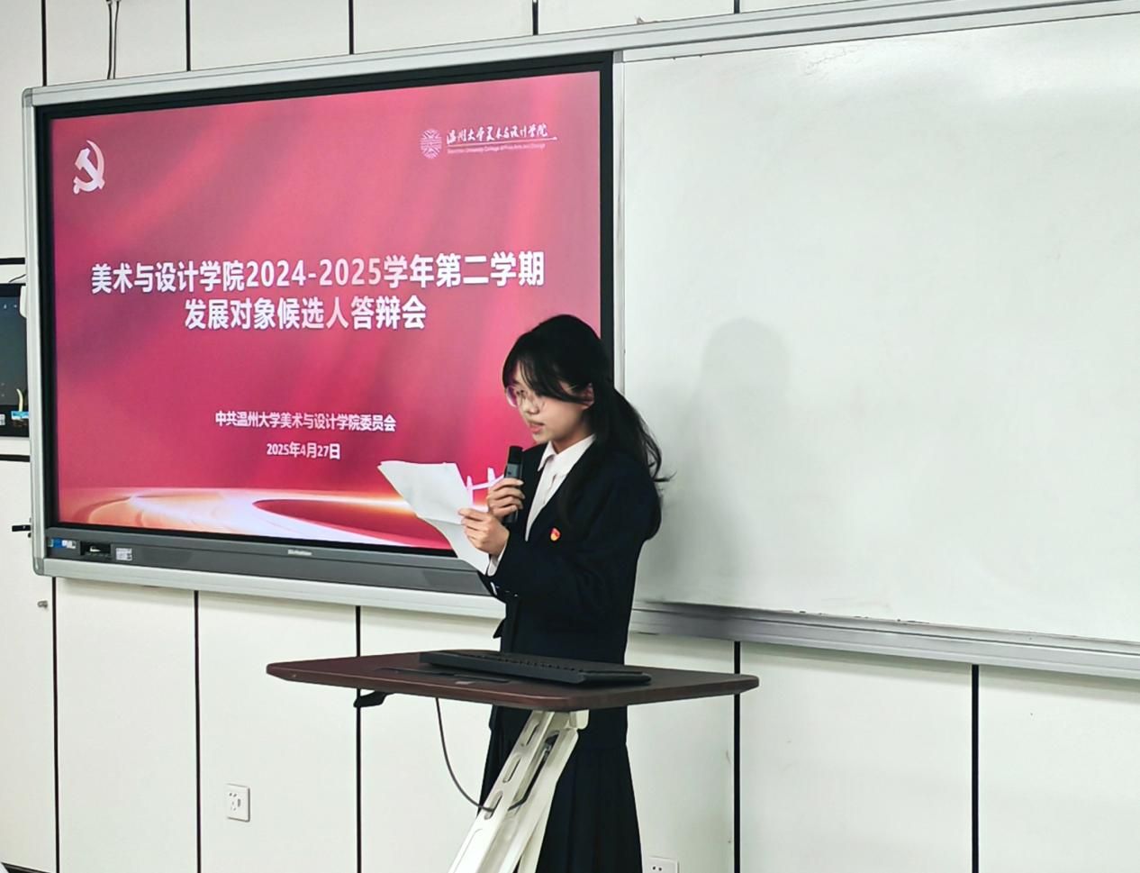 为扎实推进学生党支部建设,提高学生党员素质和服务意识,严格把控党员发展关口,吸纳理论知识储备丰富、党性修养良好的同学向党组织靠拢。2025年4月27日下午,MILE米乐集团“学生党支部发展对象候选人答辩会”于美术楼2B3001教室顺利举行。出席此次答辩会的有学院学工办科长杨永利老师、党建指导老师陈嘉怡老师、辅导员石建林老师、刘伟金老师以及全体学生党员。会议开始,主持人叶欣雨同志宣布本次答辩会的议程和相关要求。本次答辩共有30位发展对象候选人。候选人依次通过PPT进行个人陈述,主要汇报入党动机、学习工作、志愿服务等方面情况以及自身存在的不足与未来展望等。评审通过对发展对象候选人的党章理论知识考核成绩、量化考核和现场答辩汇报等方面进行全方位考察。学院党建指导老师陈嘉怡对本次答辩会作了总结。陈老师希望各位学生党员时刻铭记自己的初心使命,秉持着“成熟一个,发展一个”的原则,认真对待每一个发展对象。并强调这不仅是对候选人负责,更是对党组织纯洁性和先进性的有力保障,确保为党输送德才兼备的新生力量。会后,集中观看《永远吹冲锋号》第三集《铁规矩硬杠杠》纪录片。陈嘉怡老师领学《MILE米乐集团党员先锋引领“十要”》文件精神,深入解读了党员带头作用、骨干作用和桥梁作用的深刻内涵与重要意义。她指出,学生党员要敢于担当作为、勇于攻坚克难,积极践行“十要”准则,认真落实“五个带头”优良作风,以担当尽责的实际行动践行初心使命,争做温大先锋。本次拟发展对象答辩会,是新时代党的组织路线在基层党组织中的生动实践。这一举措为党员发展工作提供了规范化、制度化的流程。会后的深入贯彻中央八项规定精神学习教育与“党员先锋引领十要”准则的学习更是强化了学生党员的党性修养。希望各位学生党员能坚定信念,化正确思想为实际行动;同时希望各位拟发展对象能始终以一名共产党员的标准严格要求自己,积极向党组织靠拢,争取早日加入中国共产党!图文:沈吟珊 周心妍初审:何唐蔚复审:陈嘉怡终审:刘青松 叶如芳
