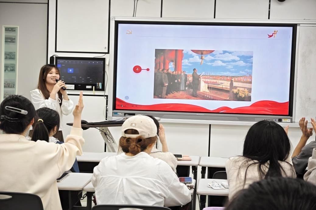 红色作品竞猜环节以革命历史题材绘画作品为切口,通过“小组抢答+艺术解析”形式,将党史学习教育与美育实践有机结合。同学们在抢答中重温“南湖红船”“井冈烽火”等历史场景,在解析中感悟“艺术语言”背后的精神力量。一幅幅画作化作“会说话的教科书”,让红色基因在“竞猜”中入脑入心,让廉洁文化在“互动”中生根发芽。