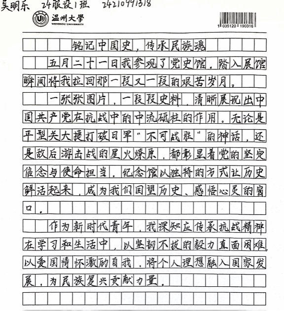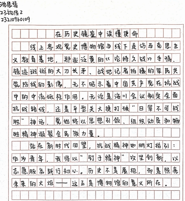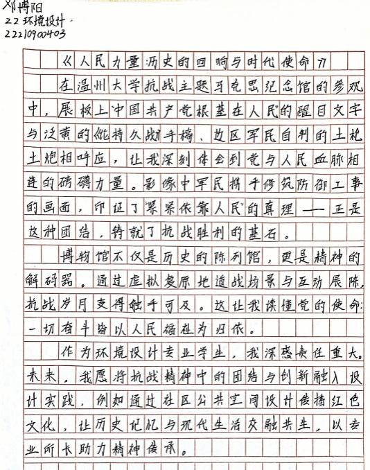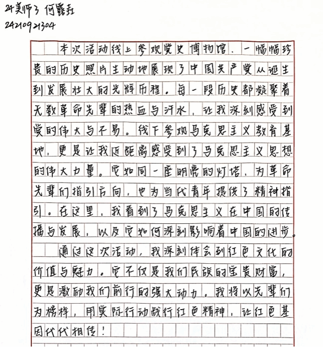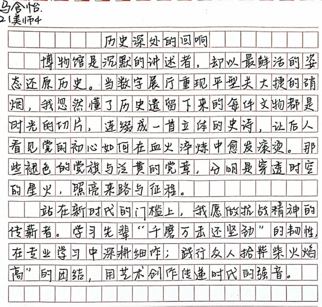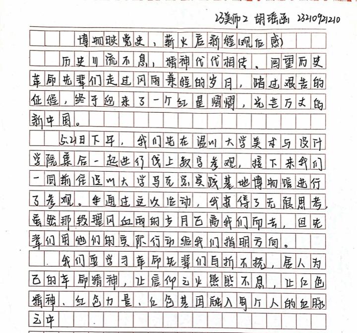 参观后,同学们结合党史、廉洁文化与个人经历,用生动的文字、真挚的情感,表达了对党史的深刻认识与情感共鸣、廉洁文化的认同践行与价值坚守和个人成长的使命追求与行动方向。