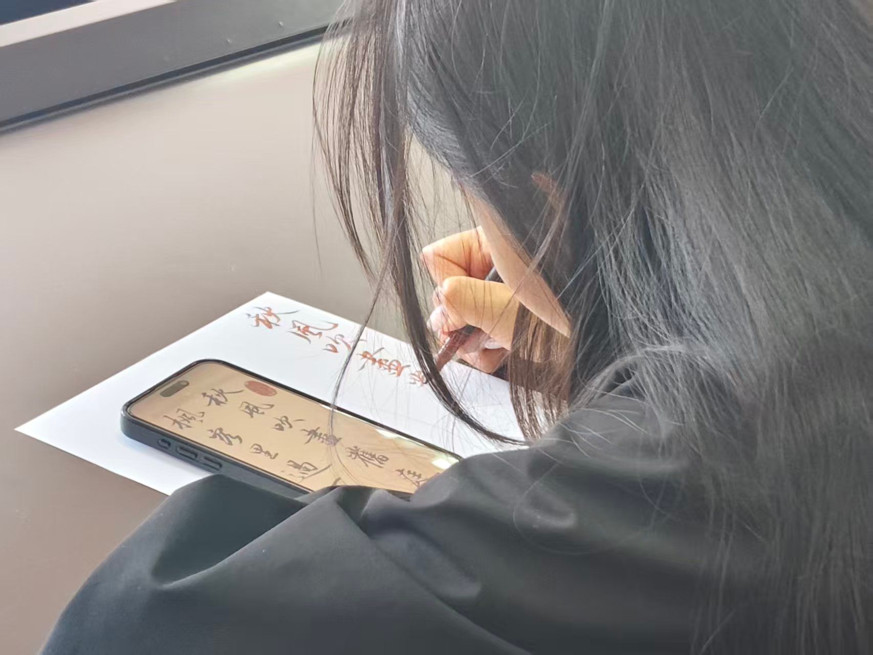 当个人的画作与集体的书法在展板上汇聚,活动进入了最温暖的分享环节。同学们围站在一起,讲述作品背后的心情故事。有人因一幅画而结识了有相似感受的新朋友,有人因一句诗而产生了深深的共鸣。笑声与掌声此起彼伏,艺术的表达在此刻成为了连接彼此的桥梁,驱散了冬日的微寒。