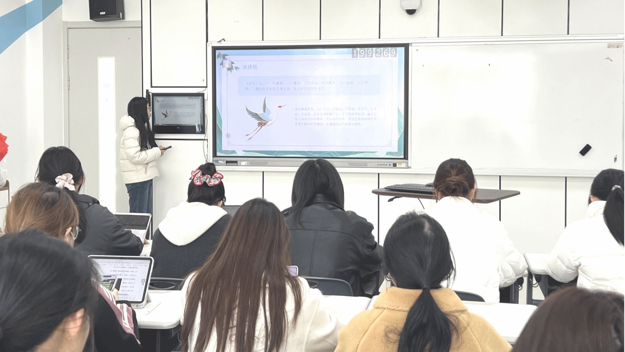 同学们观看廉洁主题微课,该系列微课通过生动的叙事与直观的画面,将抽象的纪律规范转化为具体的行为准则,深刻揭示了腐败行为的严重危害与沉重代价,有力传递清正廉洁的价值追求。引导同学们进一步增强了知敬畏、存戒惧、守底线的思想自觉,深受触动与警醒。